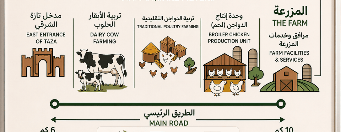 • Emplacement Stratégique : Située sur l'axe principal, à seulement 6 km de l'entrée de Taza, facilitant une logistique fluide vers les grands centres de consommation.